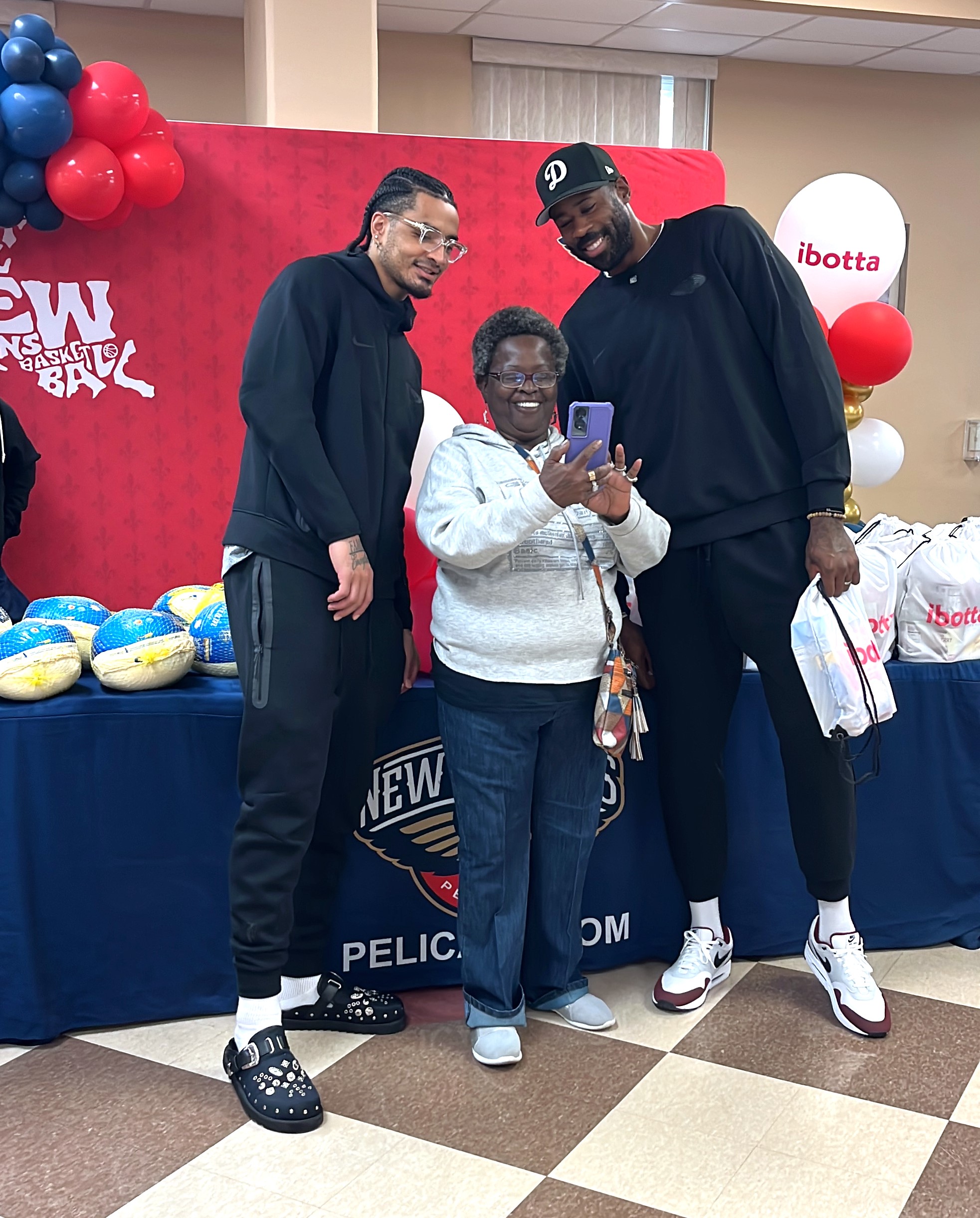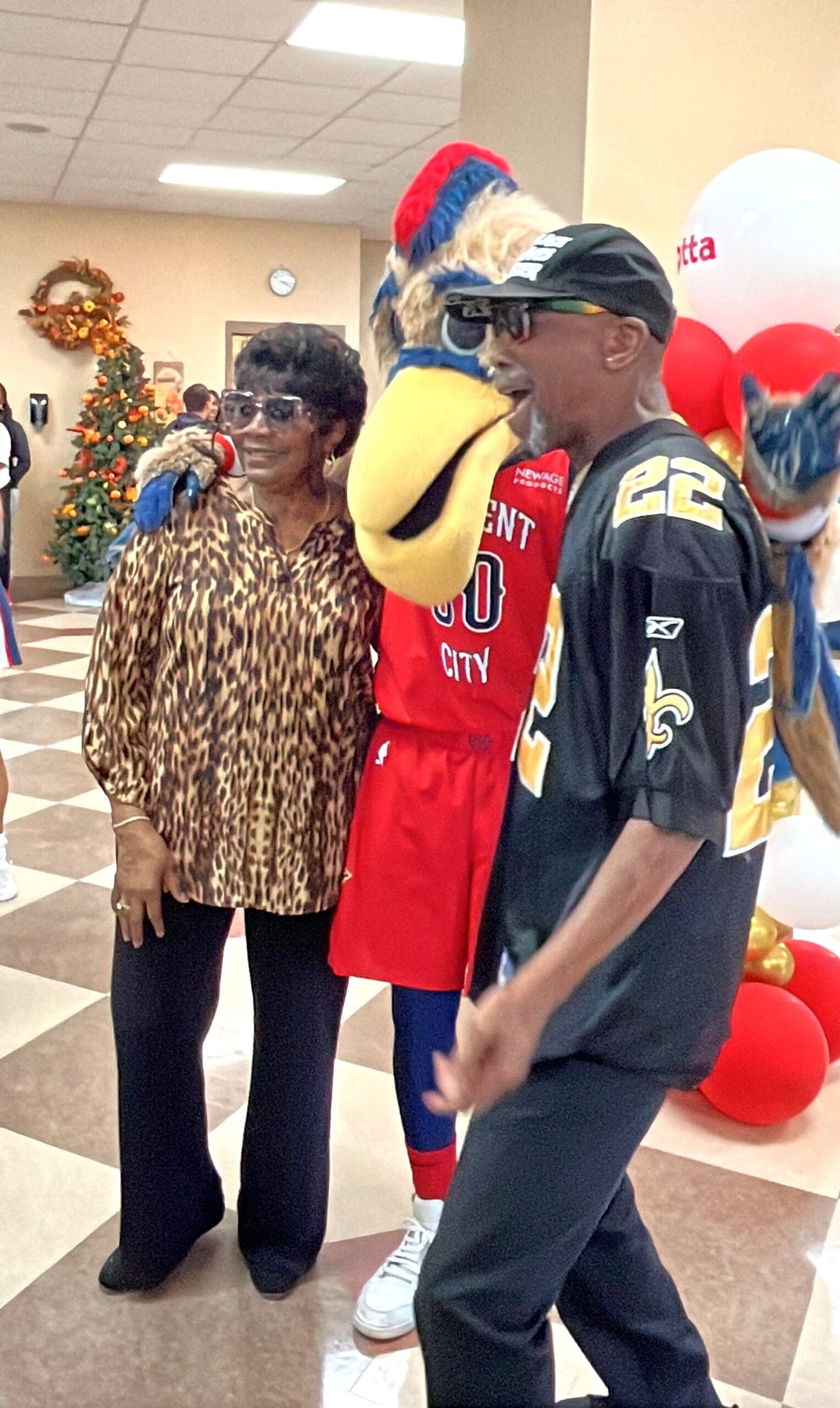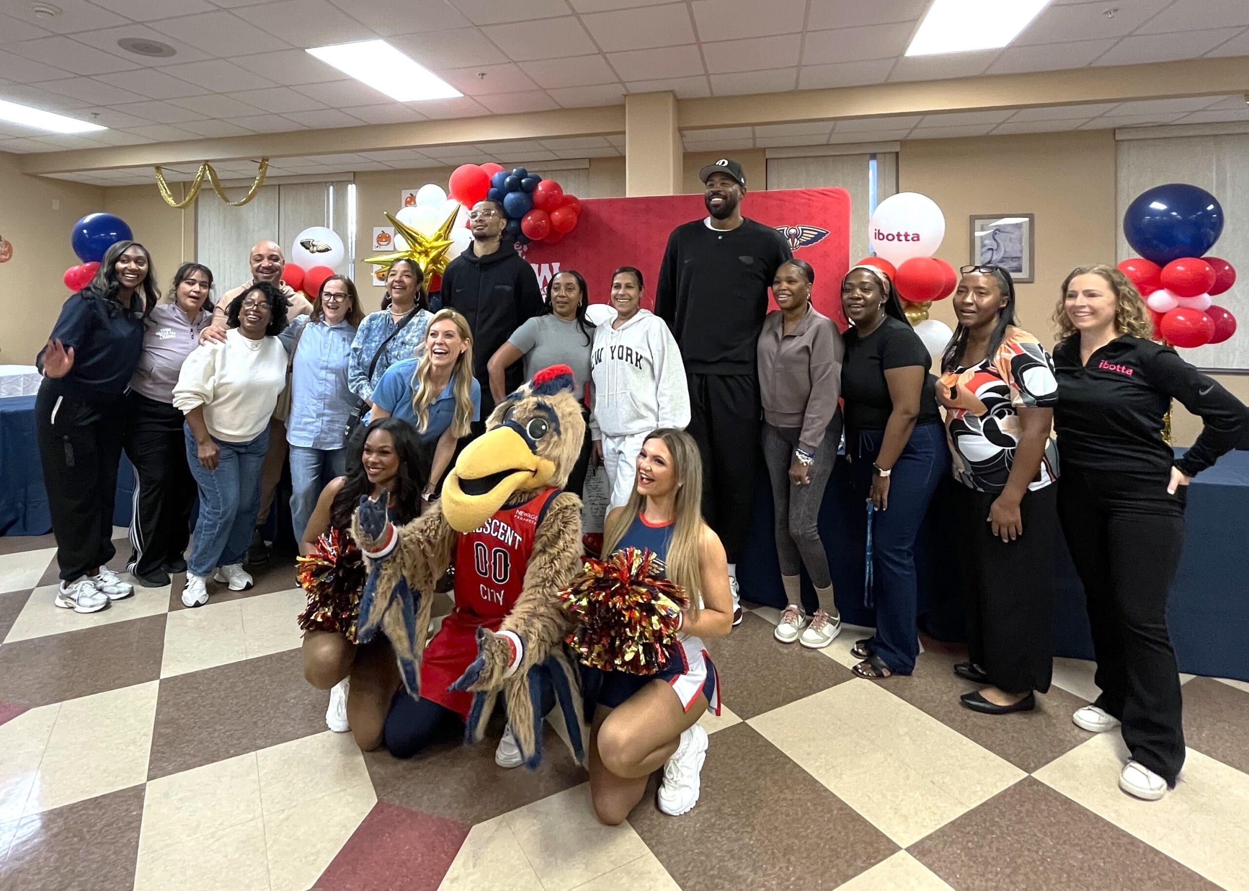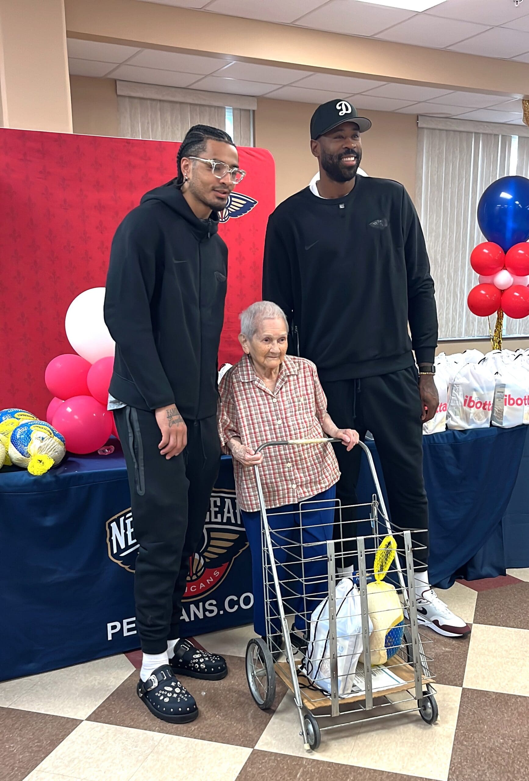 We are sincerely grateful for the generosity of the New Orleans Pelicans and Ibotta for delivering turkeys and Thanksgiving fixings to residents of Providence Community Housing! Residents from St. John Berchmans, St. Martin Manor, Villa St. Maurice and Annunciation Inn were treated to a fun visit by the New Orleans Pelicans staff and Pelicans players, DeAndre Jordan and Micah Peavy.