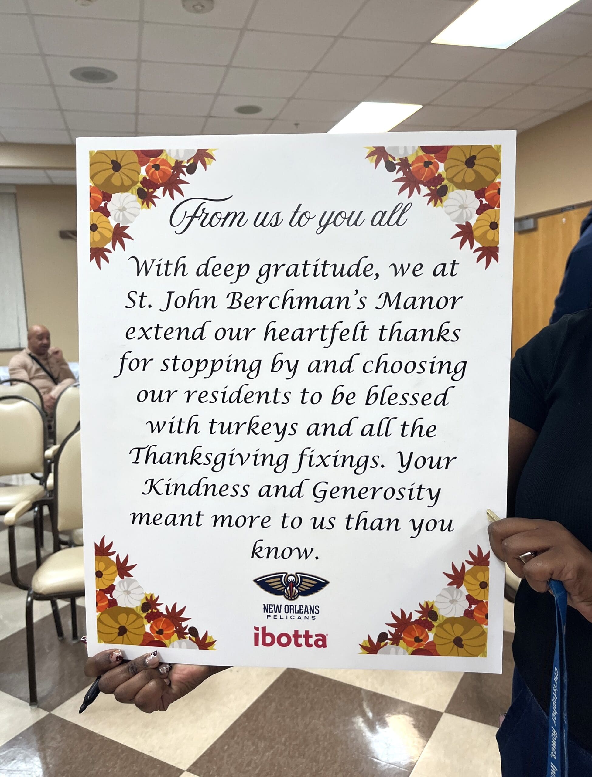 Pelicans & Ibotta Donate Turkeys and Thanksgiving Meal to Residents